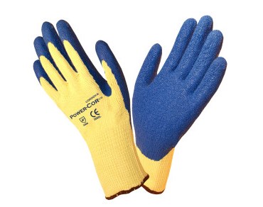"Power-Cor" Kevlar shell blue crinkle latex palm coating ANSI cut level A3