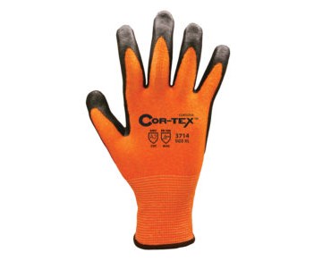 "Cor-Tex" high visibility orange HPPE shell black foam nitrile palm coating ANSI cut level A2