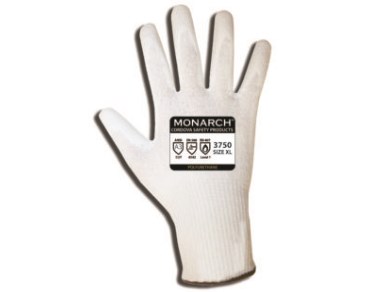 "Monarch-PU" white polyurethane palm coating ANSI cut level A3 contact heat level 1