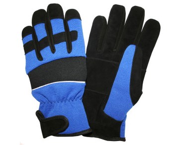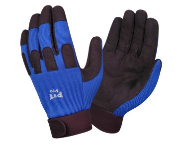 "Pit Pro" insulated black synthetic leather double palm Thinsulate lining blue/black spandex back fingertip & knuckle protectors