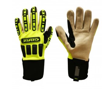 "Ogre" hi-vis lime spandex back corded canvas palm TPR protectors neoprene cuff