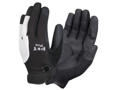 "Pit Pro" black synthetic leather palm black/white spandex back reinforced palm & fingertips
