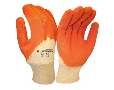 "Ruffian" premium latex dipped crinkle finish jersey lined rubberized safety cuff