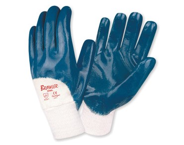 "Brawler" premium nitrile rough or smooth fully coated jersey lined safety cuff Sanitized Treatment